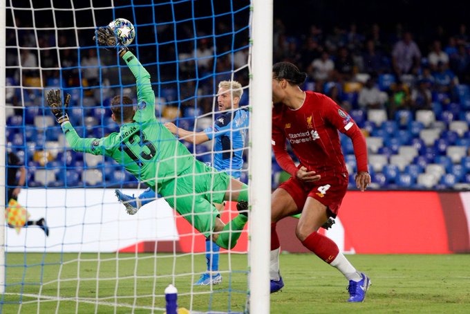 Cuando quedaban diez minutos de partido llegó el momento trágico de la noche: penalti (bastante dudoso) de Robertson sobre Callejón. Adrián adivinó la dirección del tiro y llegó a tocar el balón, pero el tiro de Mertens terminó entrando. 1 a 0.