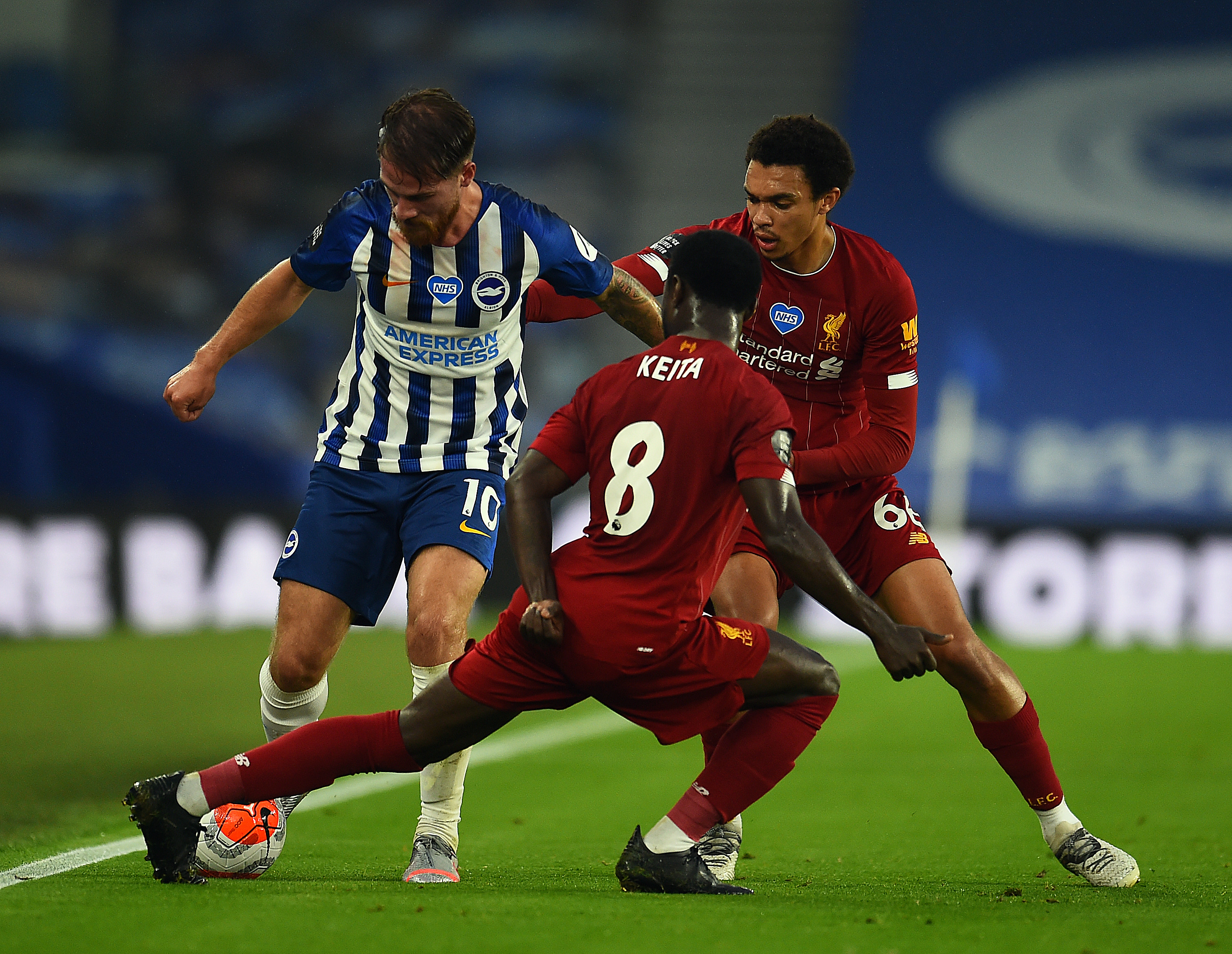 Por si el pasillo organizado por el Brighton no era lo suficientemente imponente, el Liverpool hizo acto de presencia con un tempranero gol. En el minuto 4, Naby Keïta presionó a Pröpper y le robó el balón cerca del área. El número 8 del Liverpool asistió a Firmino, que dejó pasar el balón a Salah. El egipicio remató y anotó el primer gol de la noche.