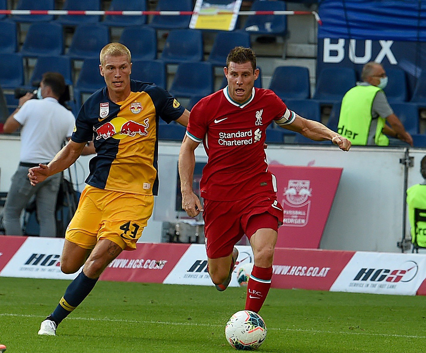 Con público en una parte de la grada, el Liverpool salió al Red Bull Arena con un parecido al que venció al Stuttgart. La única novedad fue la inclusión de Wijnaldum por Jones.